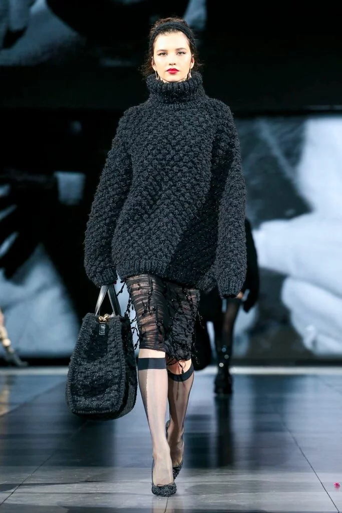 La moda se recicla de manera constante, la imagen pertenece a la colección Pret-a-Porter 20/21 en Milán de Dolce & Gabbana, dónde el protagonista es el bolso hecho con lana en todos sus diseños. La colección es inspiradora para los amantes de la lana y el punto.